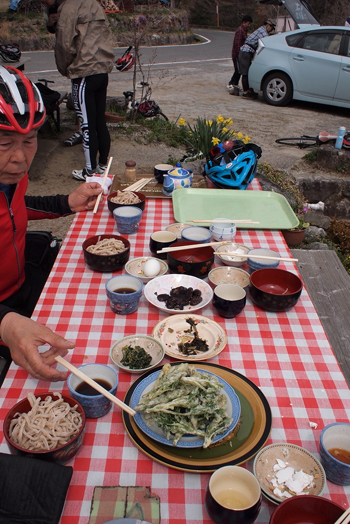 現地のおばさんのお話によりますと、一之瀬高原はなんと今、桜が真っ盛り。三つ葉躑躅も咲いて、いつもどおりの桃源郷の風情になっています。
