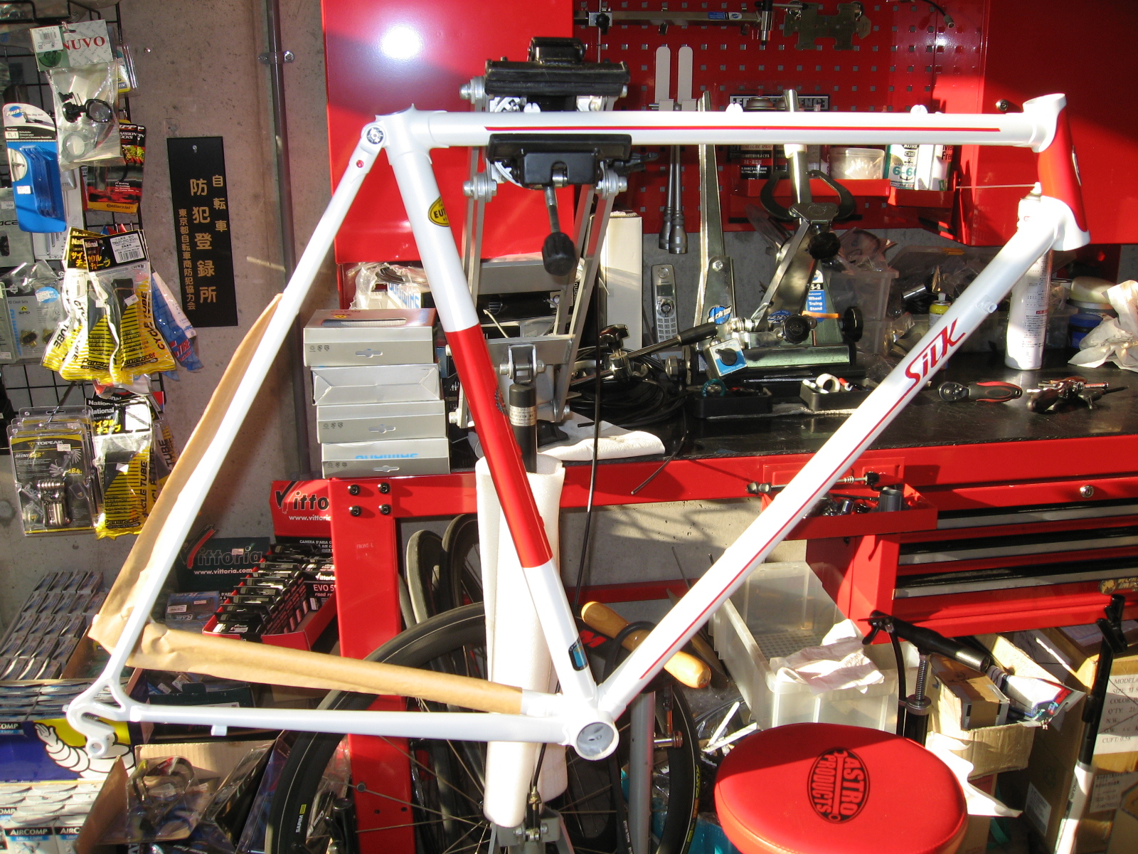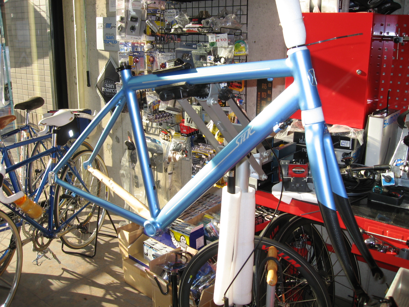 今回、絹自転車製作所にお願いして、SILK号を彷彿とさせるロードフレームを製作していただきました。