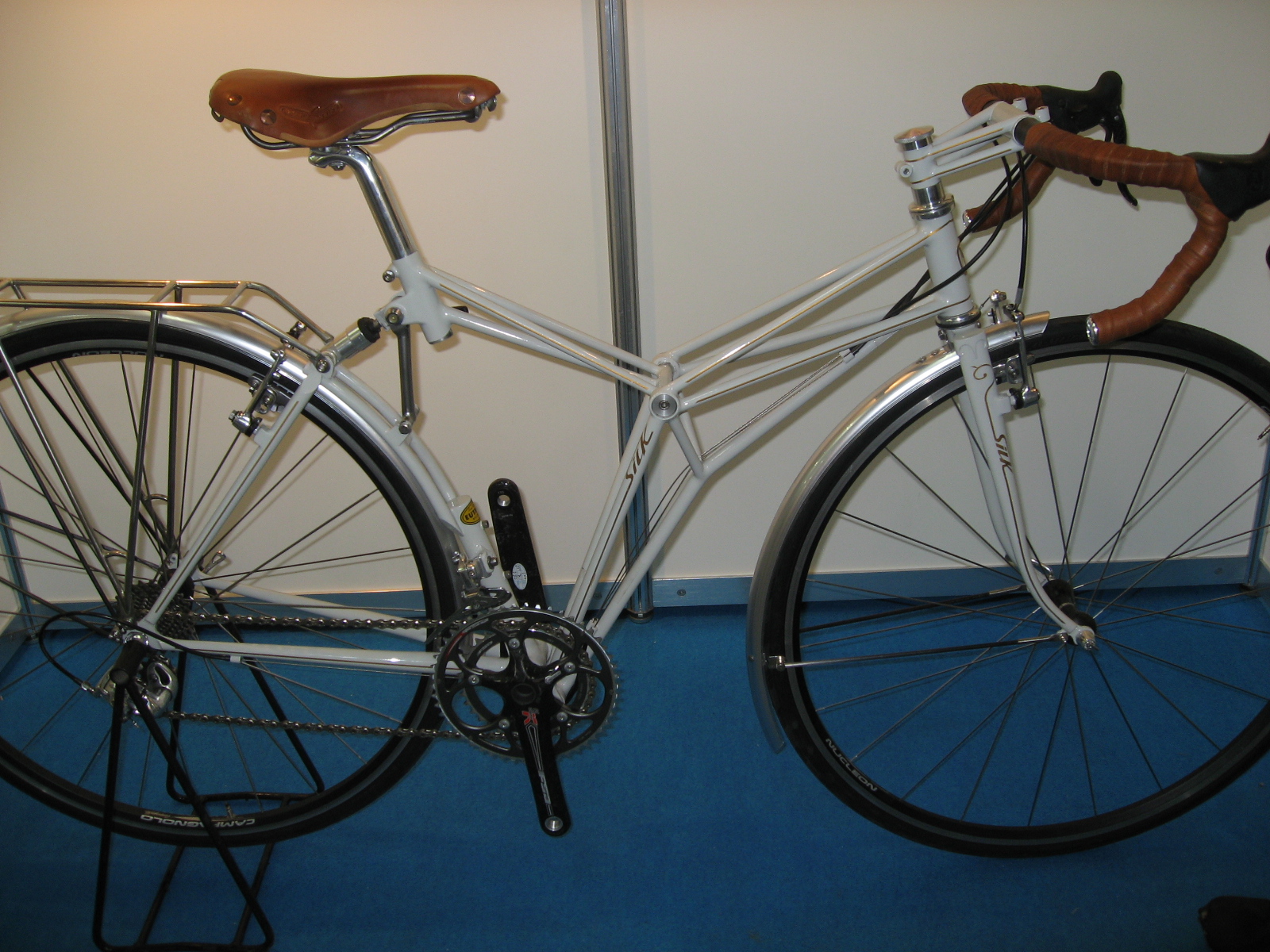 最初の画像は、絹自転車製作所の荒井氏が設計製作した、SILK PR-7 と言う輪行車です。