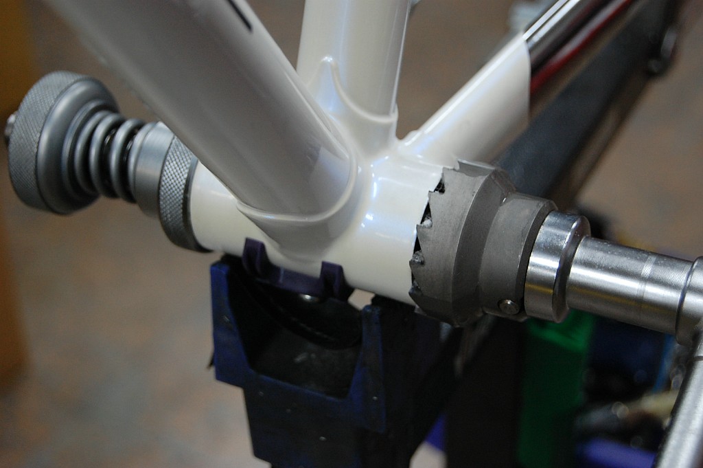 次にシートチューブをリーマーで仕上げます。