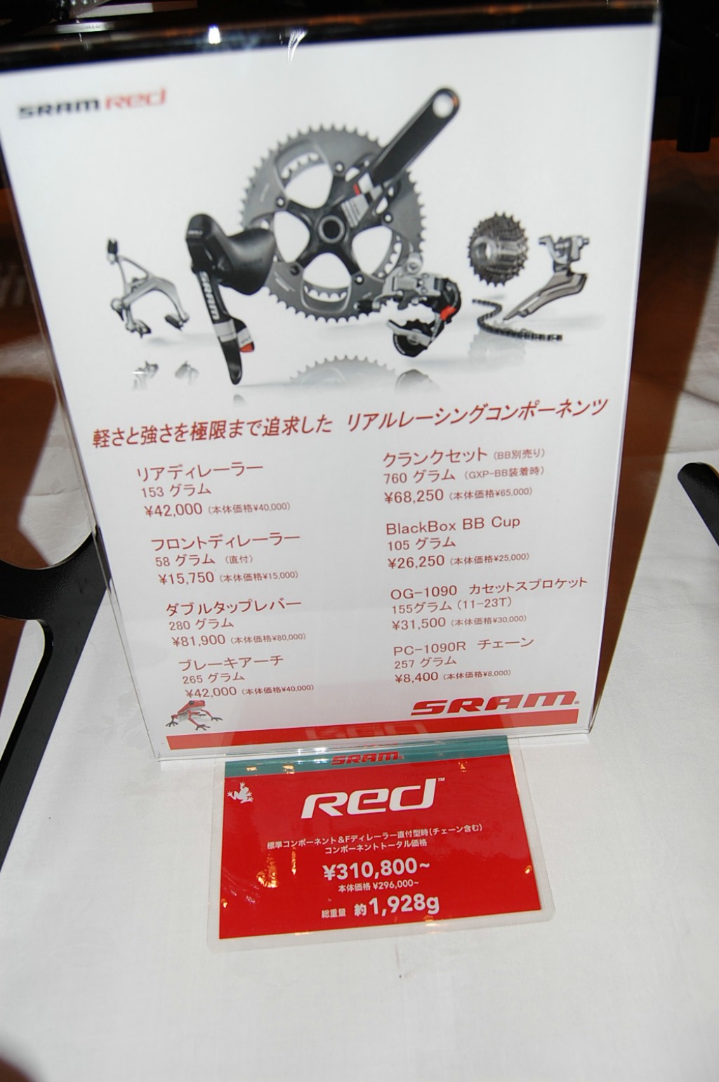 今、話題の軽量コンポーネントSRAM REDです。価格は何と81,900円