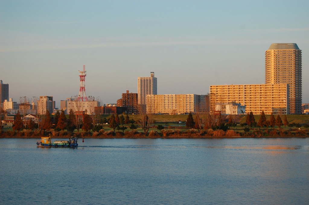 太郎衛門橋から荒川に入り、帰路は左岸を走ります。