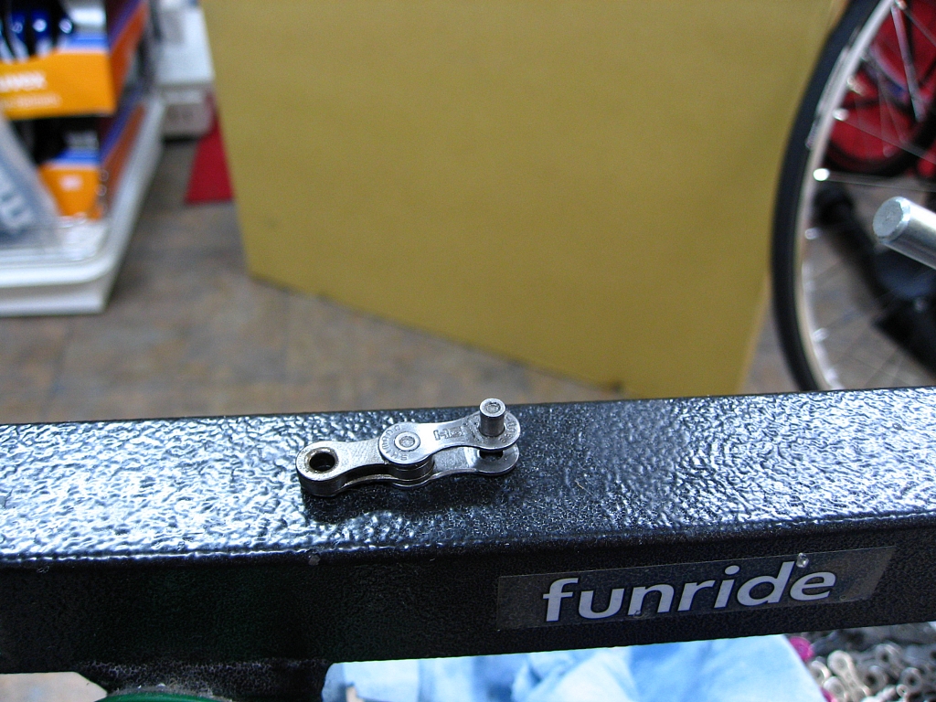次に、チェーンの永さに不具合がありましたので、一駒短くセットしなおします。