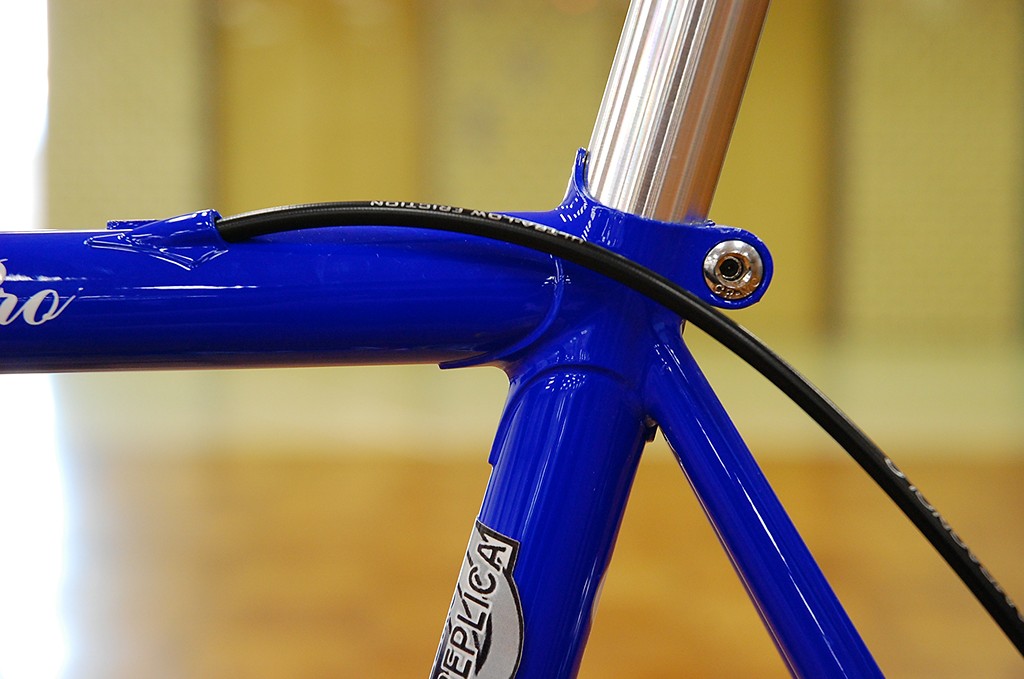 セライタリアに特注したサドル。そのブラックラインに合わせた、新しいブラックロゴのホワイトテープ、Campagnolo Record 1インチスレッドヘッドセット等、部品には妥協がない組み合わせで、この価格です。