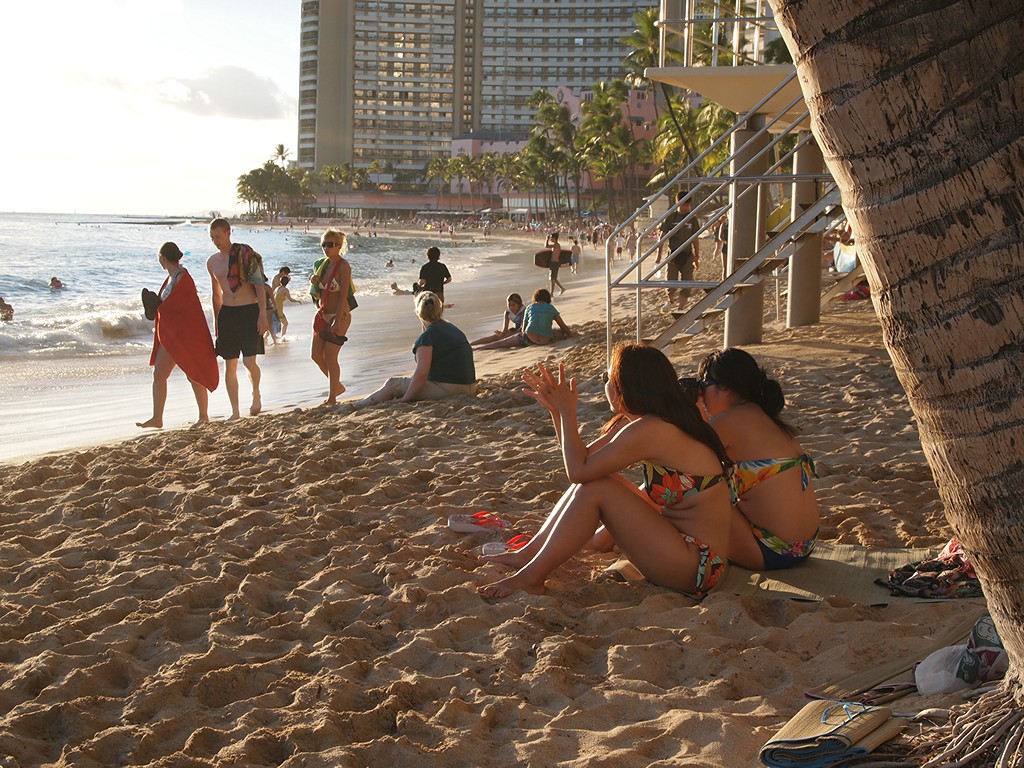 ホテルに戻り、皆でワイキキの夕方を散歩しに。