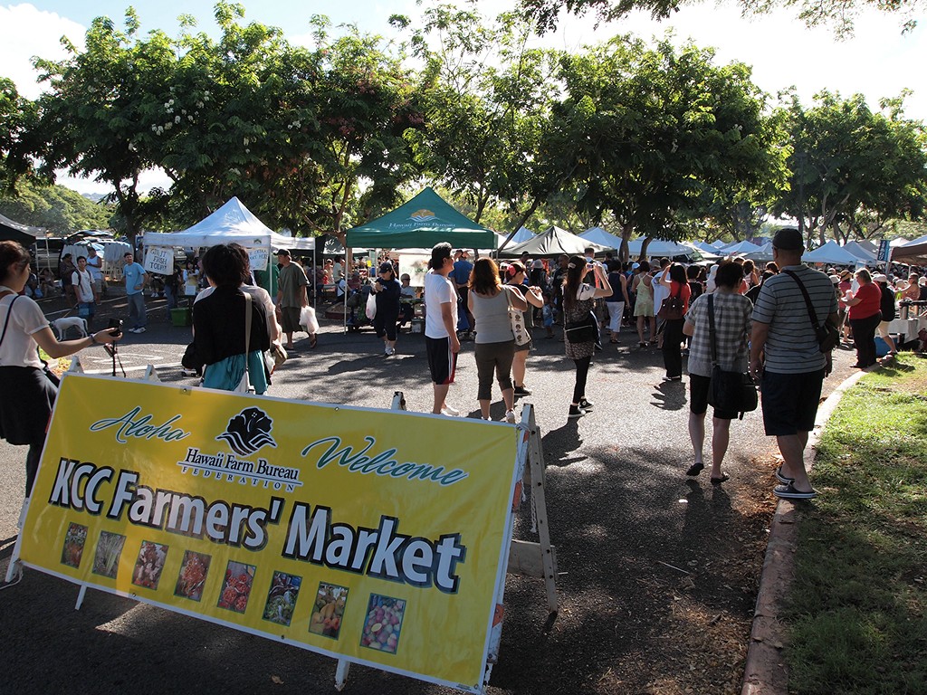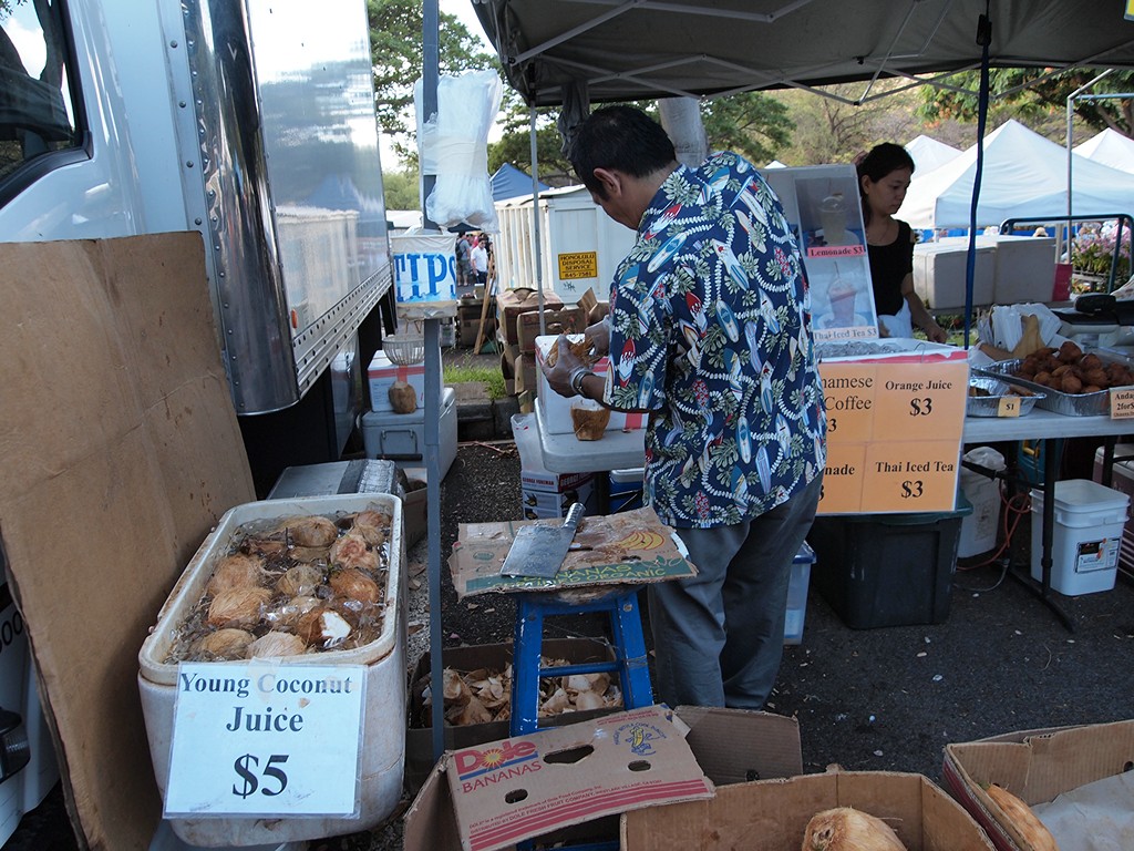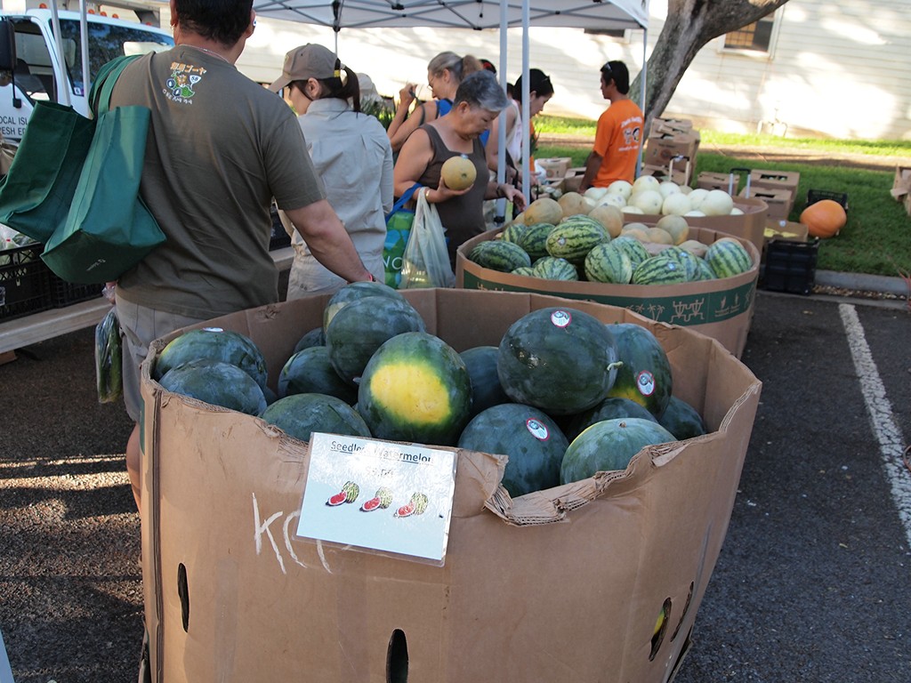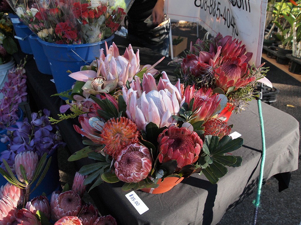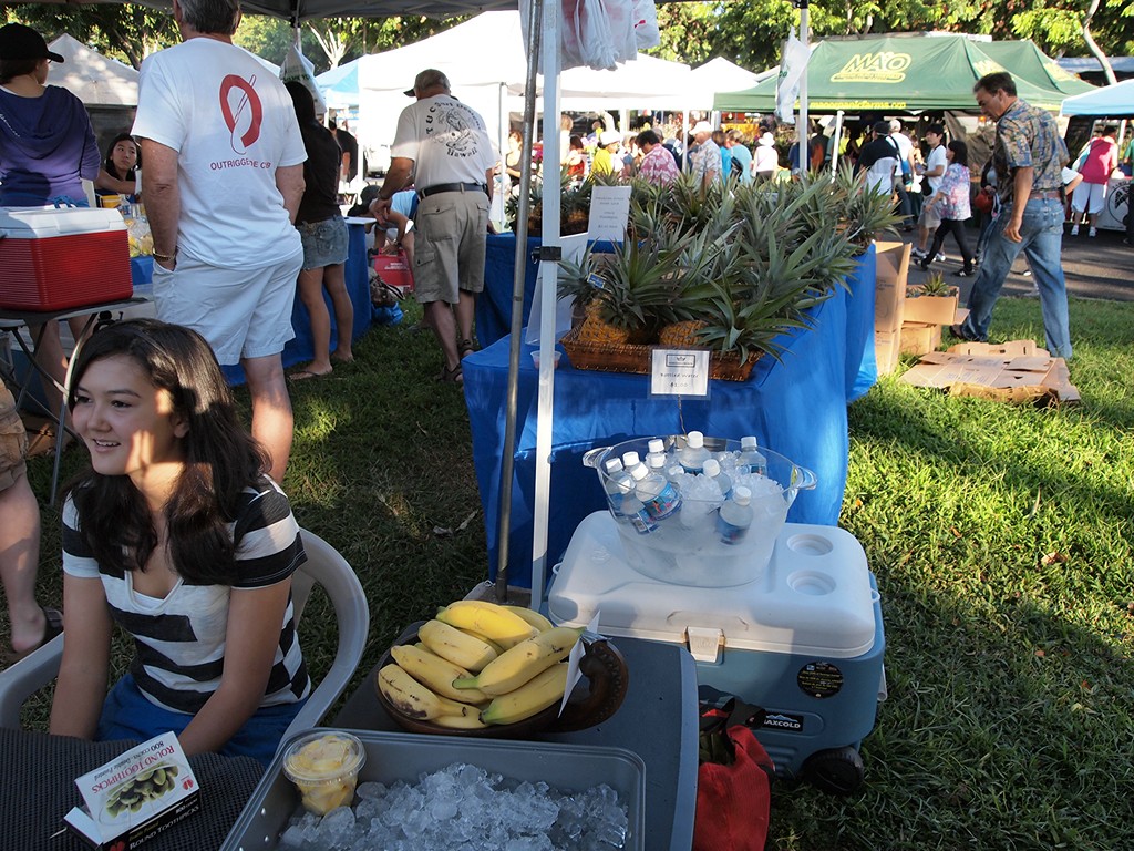 時系列が逆になりますが、サーフィンする前、朝7時30分ごろから、ダイアモンドヘッド左側の公園で、毎週土曜日に開催される朝市へ行ってきました。