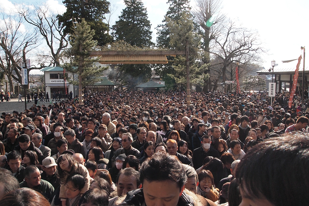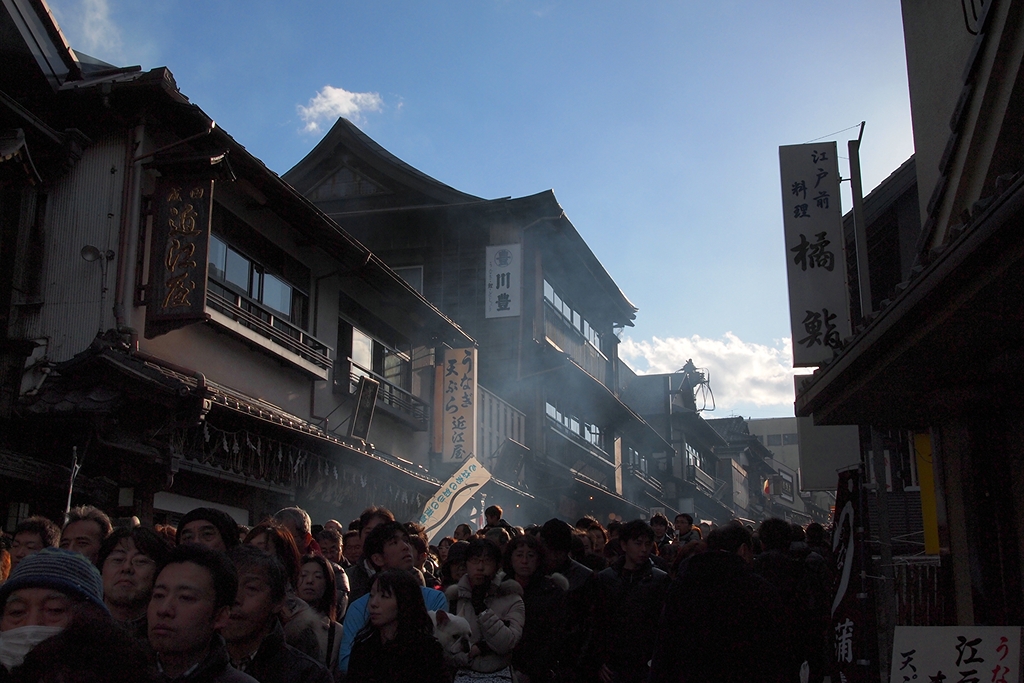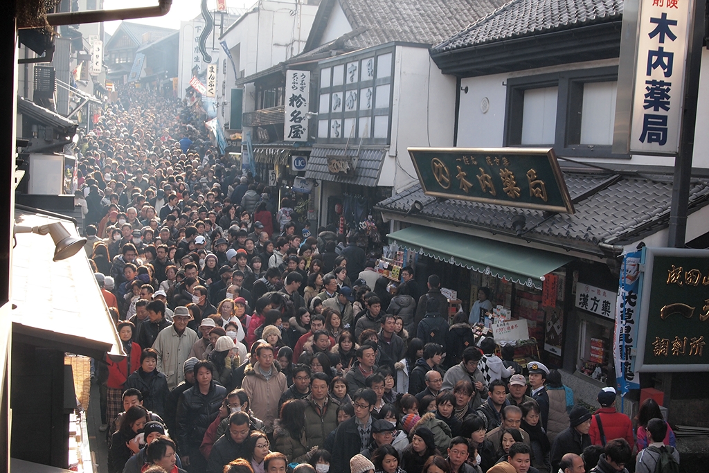 駐車場からの列と、成田駅からの列が山門で合わさり、本堂へと向かうのですが、列の最後尾から参拝まで何時間かかるのか見当もつきません。