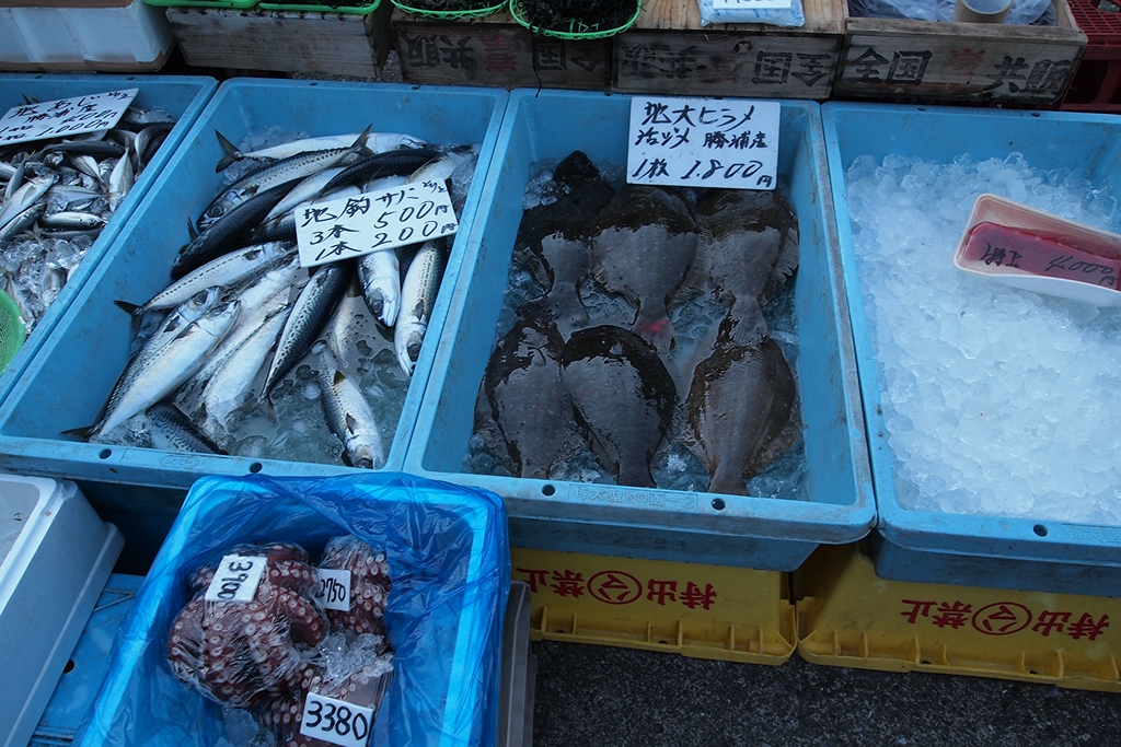 宿の皆さんにお礼を言って、隣町の勝浦の朝市へ。