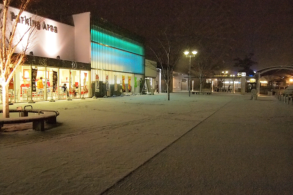 まだ、チェーンを装着する前ですが、ガラガラのSAは、すでにこの区間は通行止めになっているからです。