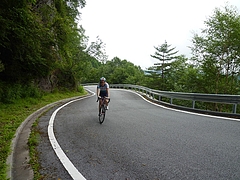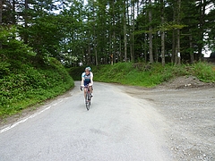 私の場合、前回よりスプロケットの歯は29-25Tとダウンしたものの、ホィールがカーボンで軽いのと、チタンロードの軽さで、とても楽に登れました。