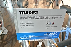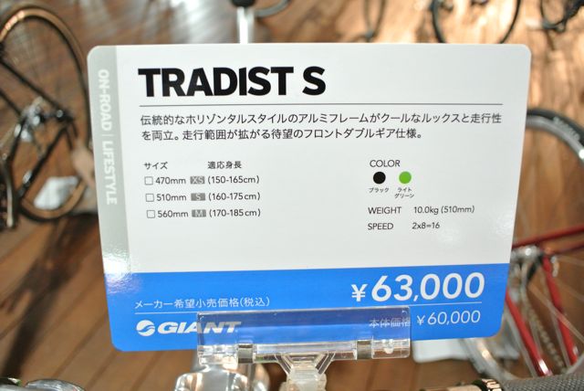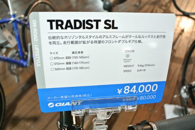 TRADIST SLは、ディープホイールを採用したモデルです。コンポーネントは、SHIMANO 新型SORAになりました。