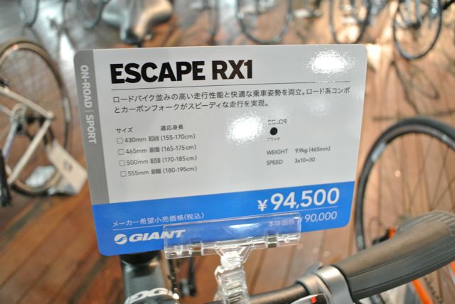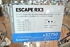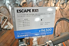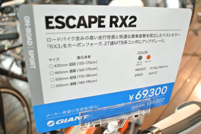 ラインナップは、フロントダブル、シマノ105とTIAGRAのミックスコンポーネントで組まれたESCAPE RX0、TIAGRA採用でフロントトリプルのESCAPE RX1、SHIMANO ACERA採用のESCAPE RX2、そしてESCAPE RX3です。