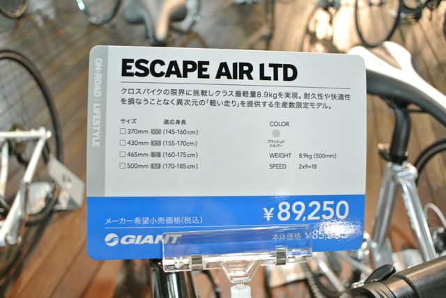 さらに、ESCAPE AIR LTDという、カーボンフォークを採用した車種もラインナップされました。