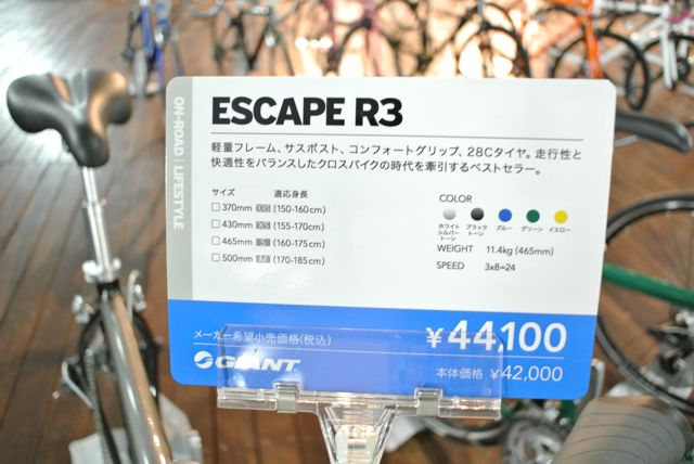 今年のESCAPE Rシリーズは、定番のESCAPE R3のみのラインナップです。