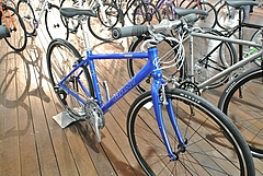 シングルスピードのようなシンプルさと、アルマイト塗装されたスモールパーツの差し色が、おしゃれなクロスバイクです。