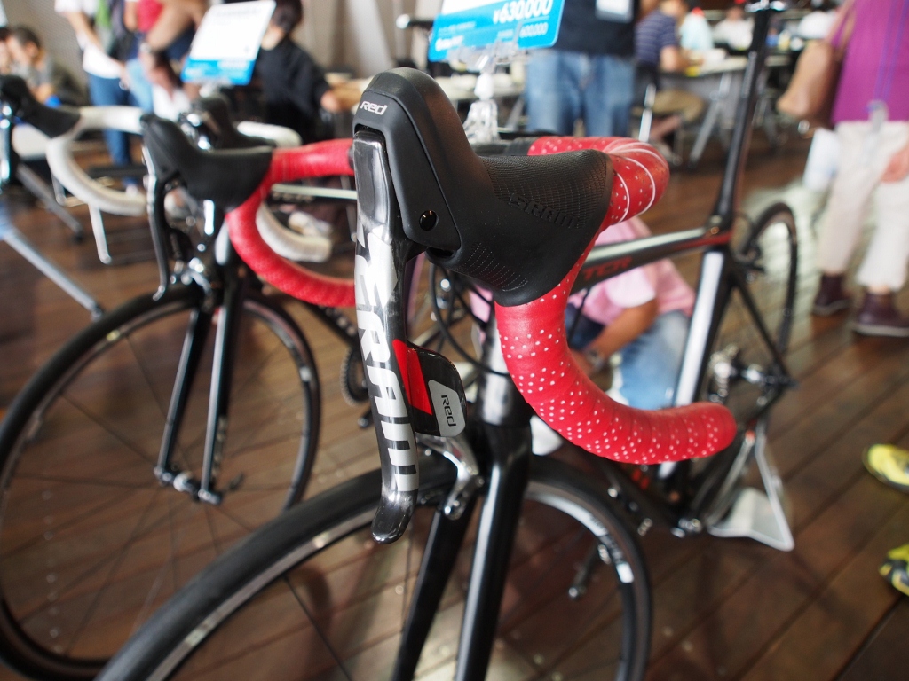 New REDと9000 DURA-ACEを2台並べて展示してありましたので、双方を比べてみました。