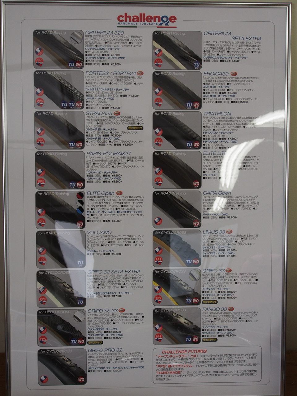 旧クレメンの技術を継承して、ハンドメイドのイタリアタイヤを、今に伝えています。
