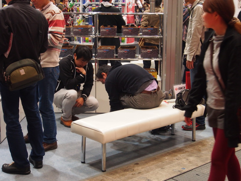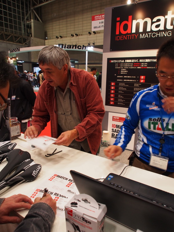 お客様に直接SIDIのシューズを試していただくコーナーにいました。