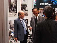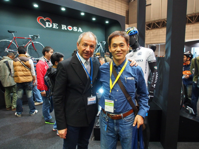 ピナレッロとデローザ、日向日直社長がお話しています。