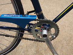 軽量なスチールチューブを、ロウを盛り、ラグレスのフィレット加工と、ちょっとした流行の流れの中のフレームです。