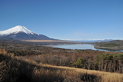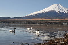 ご覧のとおり、とてもいいお天気で、絶好の撮影日和なのですが、その分、ごく普通の富士山写真になってしまい反省しています。これなんか、白鳥がいたから良い方です。
