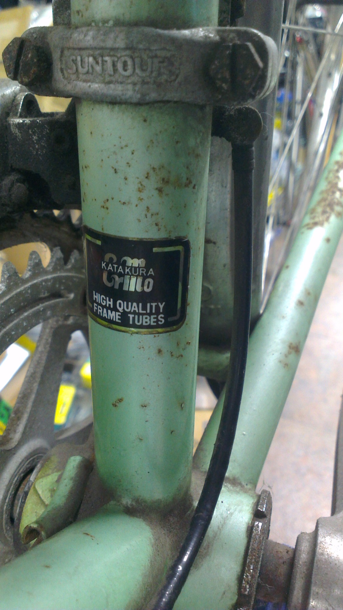 このフレームは、当時クロモリチューブを使った、やや高級なフレームでした。