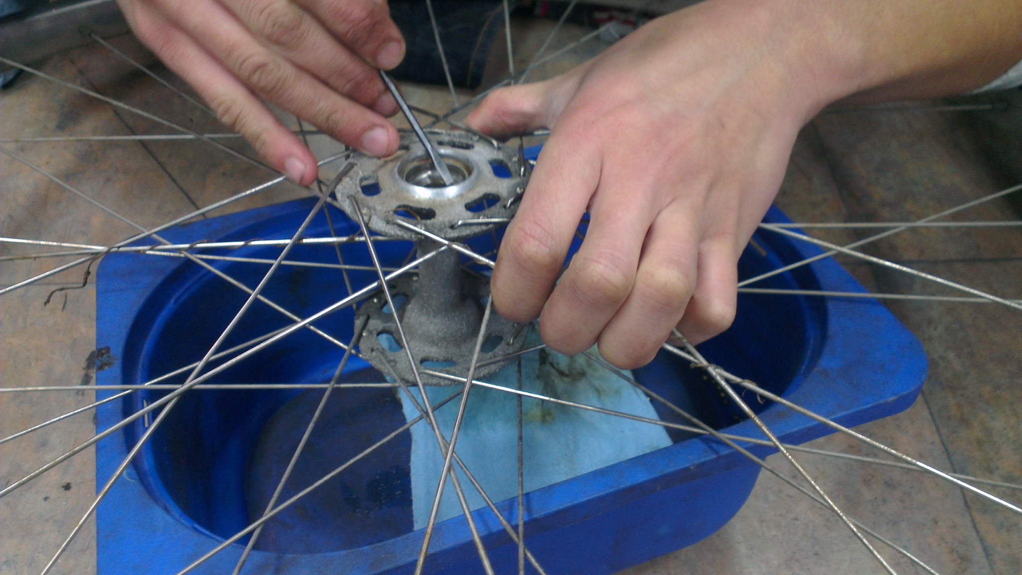 ハブ、BB、ヘッドパーツ。ワイヤーも全交換します。スポークが緩んだホィールの調整、前後タイヤチューブ交換(27x1-1/4 通称シブイチ)等を実施します。