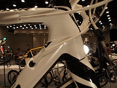 最上級カーボンを用い、シートポストまで自製。独自のステムを新たにデザインすることで整備性と空気抵抗の減少を両立しています。